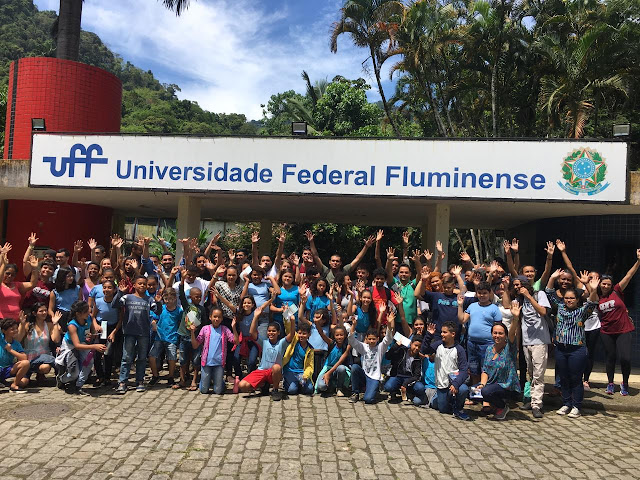 Dezenas de alunos da rede municipal e futuros professores de Geografia puderam interagir em uma manhã repleta de novas experiências de ensino e aprendizagem em uma verdadeira sala de aula a céu aberto: a Bacia Escola do Retiro. No dia 29 de novembro, 5ª feira, os estudantes do Curso de Licenciatura em Geografia da Universidade Federal Fluminense – Angra dos Reis prepararam atividades lúdicas para ensinar os conteúdos das disciplinas de Hidrologia e Biogeografia aos alunos da Escola Municipal Frei João Moreira. As diferentes “salas de aula” foram os espaços do campus Retiro da Universidade Federal Fluminense em Angra dos Reis e seu entorno, que abrangem diversos ecossistemas, como o manguezal, córregos, praias e florestas, que historicamente vem sendo utilizados e transformados tanto pelos tradicionais caiçaras como pelos moradores e visitantes mais recentes.