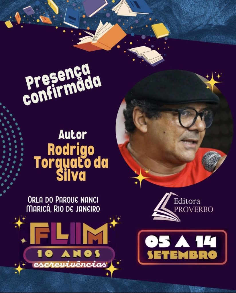 O Prof Rodrigo Torquato marcará presença na Festa Internacional do Livro – na FLIM de MARICÁ/RJ, onde estará lançando o seu mais recente livro.