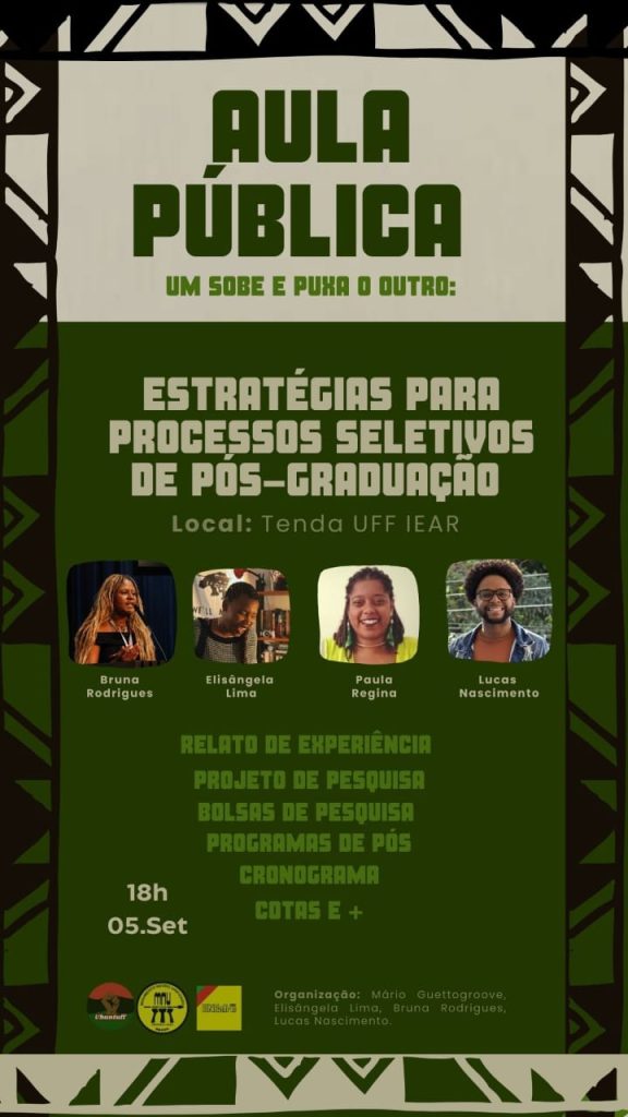 No dia 5 de setembro, às 18h, na tenda do IEAR, ocorrerá a aula pública sobre estratégias para processos seletivos de pós-graduação.