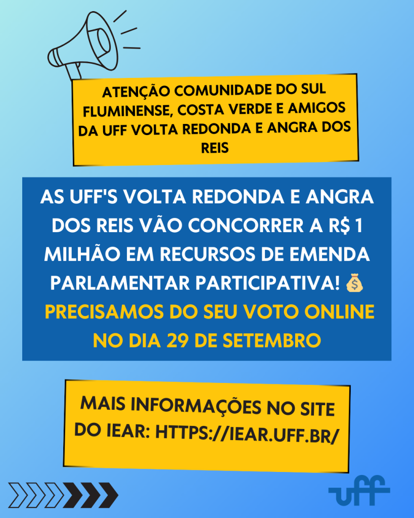 As UFF’s Volta Redonda e Angra dos Reis vão concorrer a R$ 1 milhão em recursos de Emenda Parlamentar Participativa! 💰