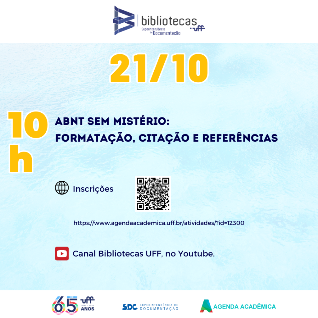 21/10, 10:00 às 12:00 | ABNT sem mistério: formatação, citação e referências