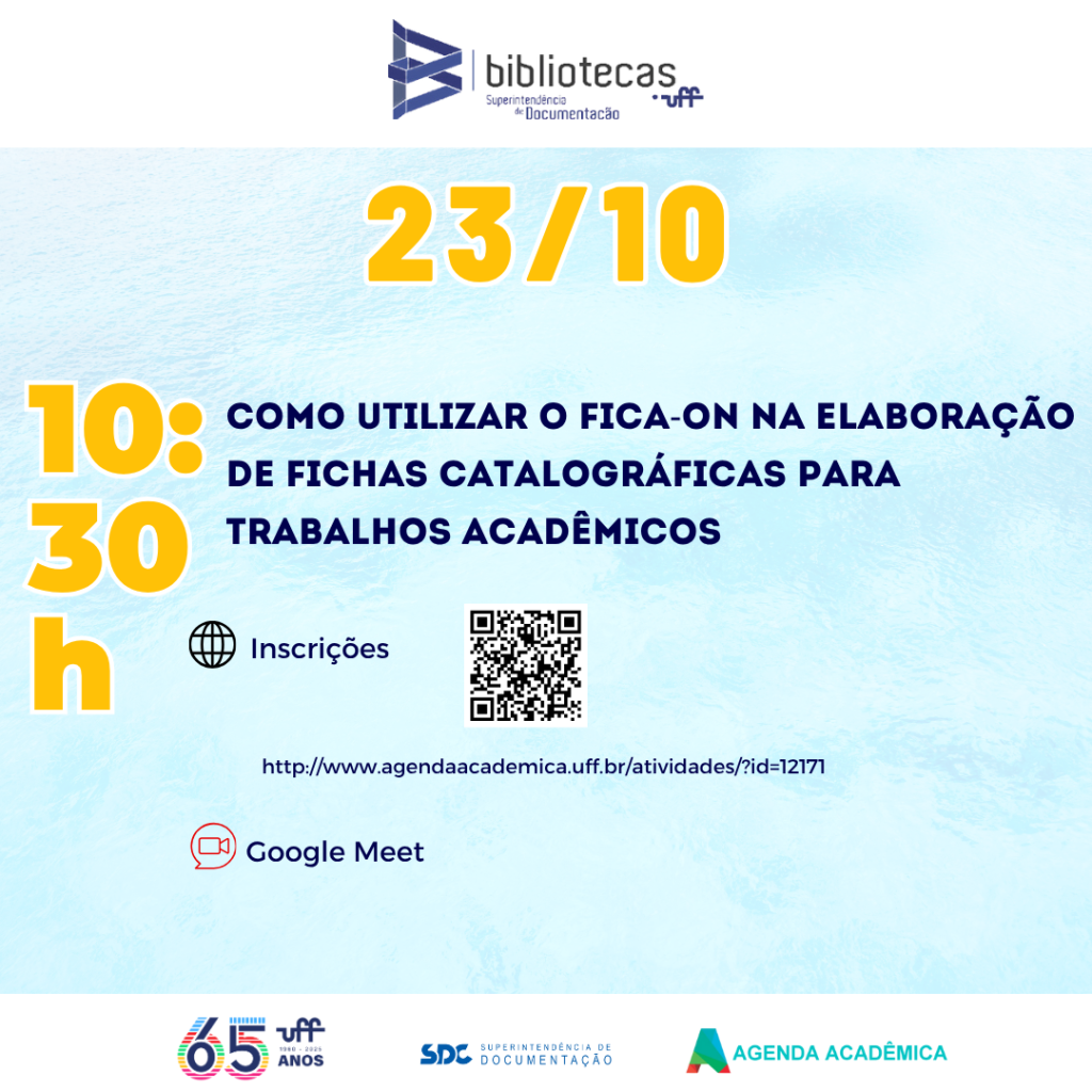 23/10, 10:30 às 11:30 | Como utilizar o FICA-ON na elaboração de fichas catalográficas para trabalhos acadêmicos (via Google Meet)